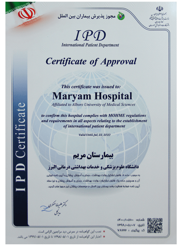 In the next step, our IPD experts explain the whole process in details and give you a precise schedule, so that you can manage your time to get your visa and passport ready to travel. All the cases of hoteling and medical services are fully considered by Maryam Hospital experts, so your relatives and you are welcomed in the best hotels near the hospital’s location. Afterward, you will be welcomed in the hospital and get detailed information about your medical situations. Then, needed examinations and checkups will be done and the residence in the hospital will start safely and consequently. It should be mentioned that our translators are in the hospital 24 hours a day to help you get the required service. You will experience the process of treatment by experienced doctors, professional nurses, and punctuate staff and will feel safe and relaxed.